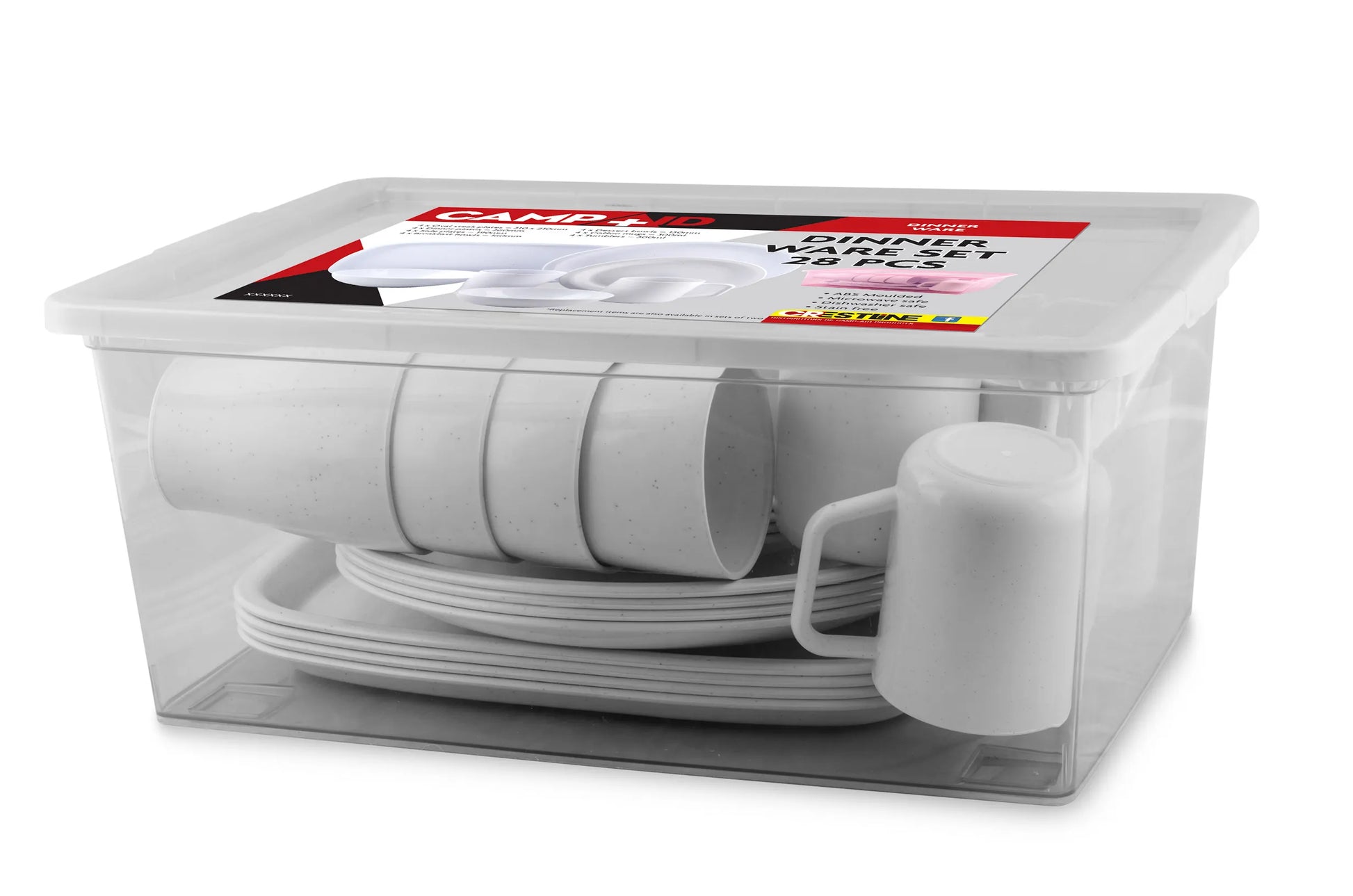 28-piece dinner set for camping.