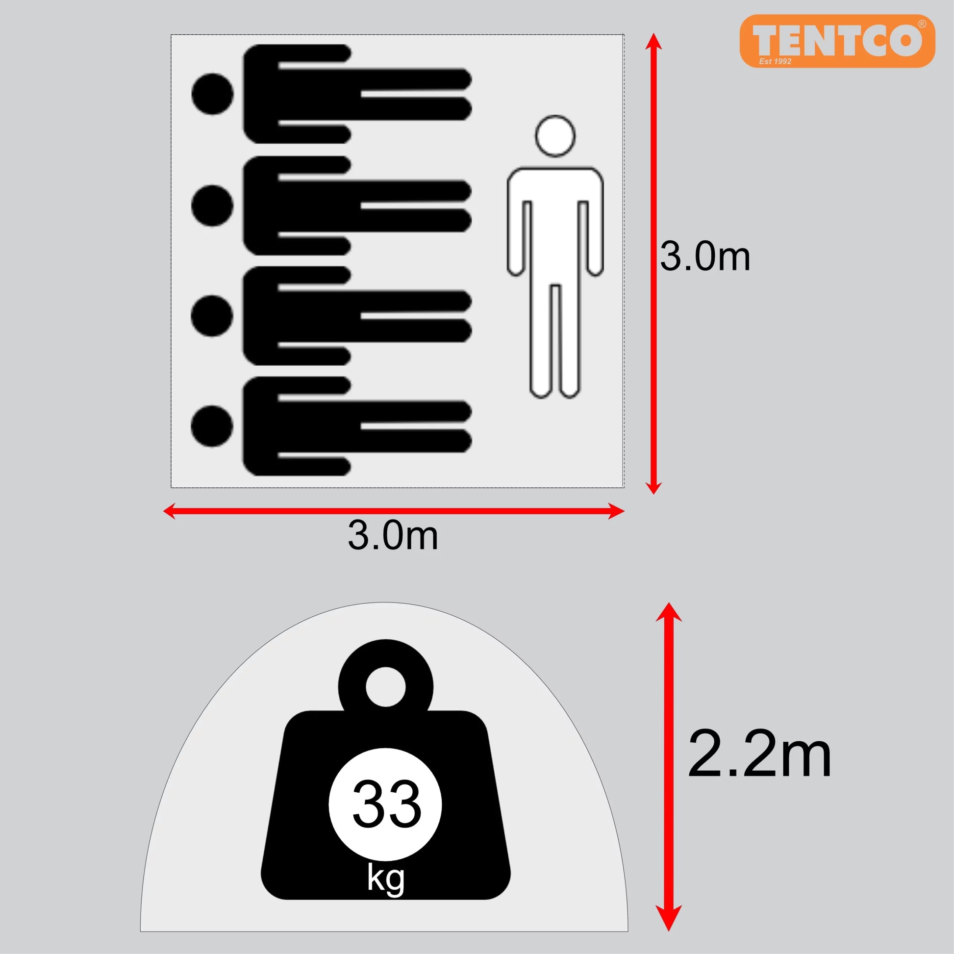 SIZE: 3.0m x 3.0m x 2.2m
