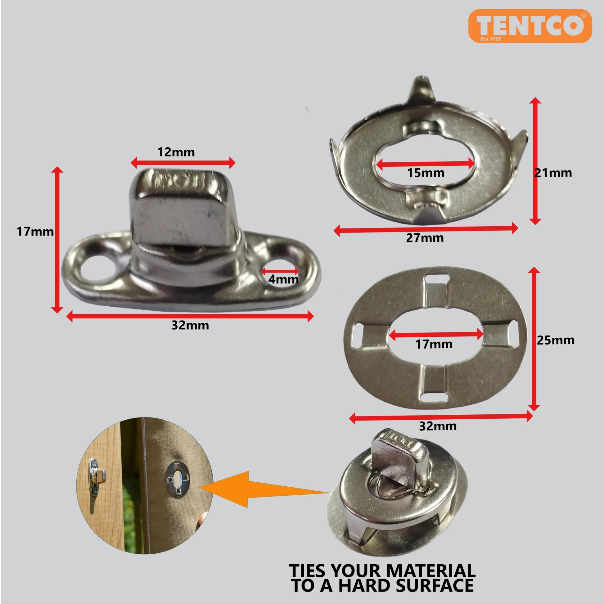 Set of 2 turn buttons for tent setup.